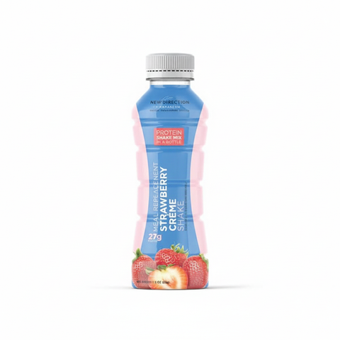 Introducing the New Direction Strawberry Creme Shake Bottle. Enjoy a delicious and nutritious shake with the delightful taste of fresh strawberries and rich creme. Packed with essential vitamins and minerals, this shake provides a perfect balance of flavor and health benefits. Boost your energy and satisfy your cravings all in one shake.